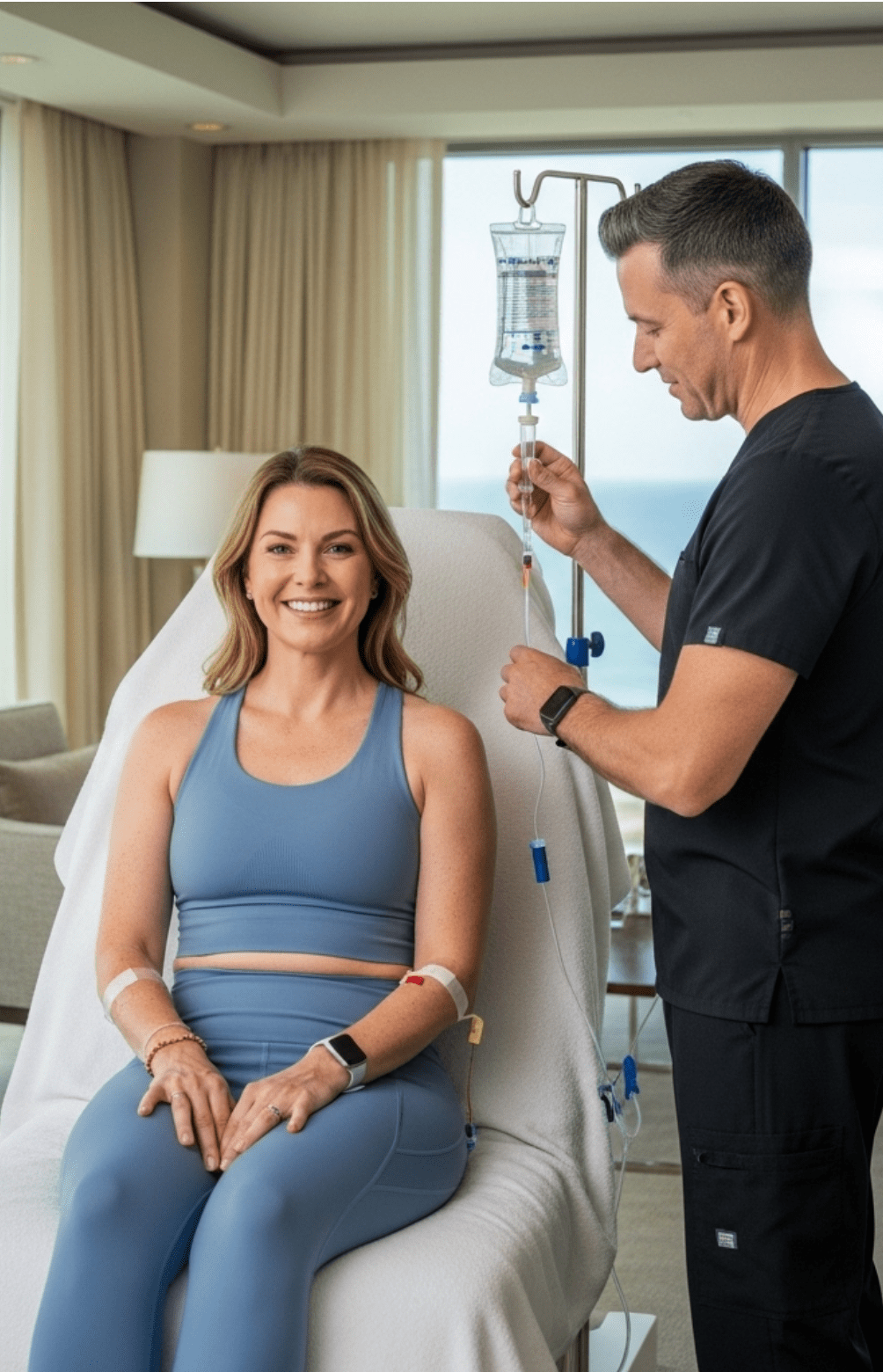 No. The procedure is non-invasive and administered via IV. Guests relax in a tranquil setting while receiving world-class care.
